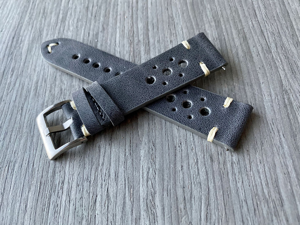 Dark Gray Crazy Horse Vintage Leather strap BLUE stitching