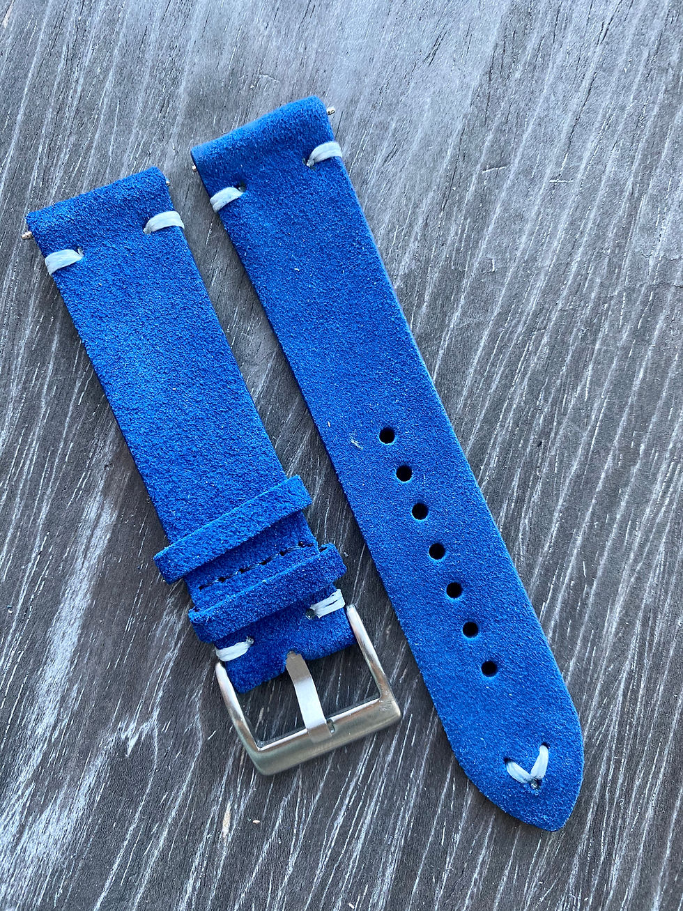BLUE Suede Vintage Leather strap band WHITE stitch