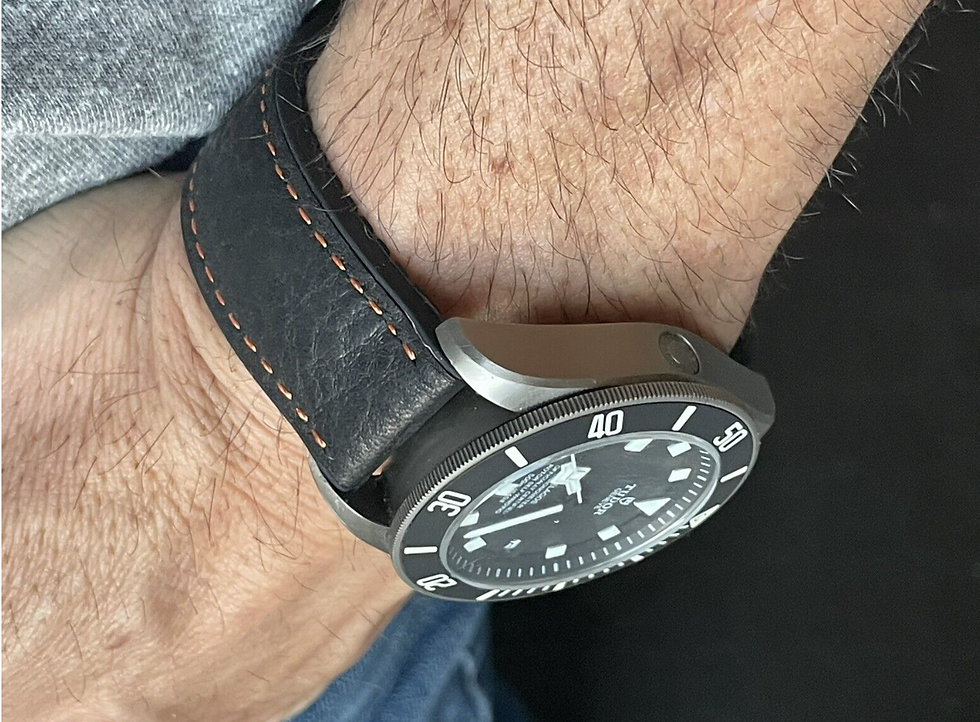 BLACK Waterproof Rubber &; Top Grain Leather strap, open BROWN Stitch